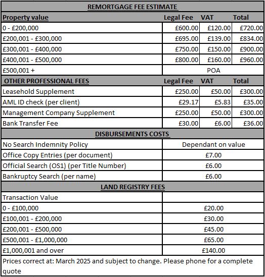 Work undertaken on your behalf: carrying out essential identification and anti-money laundering checks, investigation of title, requesting required searches and advising client on any additional searches that may be required, checking mortgage terms and conditions and ensuring compliance, drafting transfer deed supplying certificate of title to mortgagee and requesting funds, preparing completion statement for client and registering the change of ownership at the Land Registry.